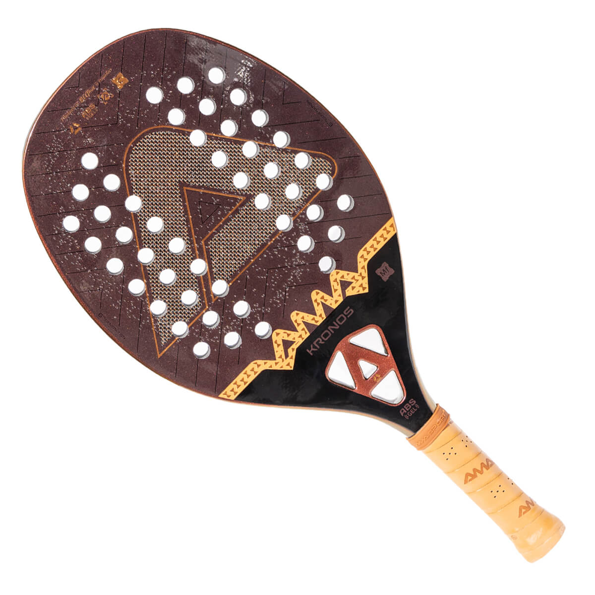 A nova raquete de beach tennis Ama Kronos - 6th Generation- a evolução da raquete mais aprovada nas quadras de Beach Tennis. Um modelo que atende todos os níveis de jogadores, agora com novas tecnologias. 3k metal fusion carbono que combina leveza, flexibilidade e controle, oferecendo potência, precisão na medida certa e muita durabilidade. ABS GEL tecnologia AMA de absorção de impactos e anula quaisquer vibrações, mais conforto em cada golpe. DELTA RUBBER AMA IMPACT sistema exclusivo de absorção no coração da raquete que dá estabilidade aos golpes. Dumpershield System reforço estrutural em todo o frame, com materiais de diferentes densidades, proporcionando um sweet-spot incomparável. EVA PRO que traz potência, controle e conforto para seu jogo. AMA SIDE GRIP mais conforto e aderência na região de preparação do backhand.