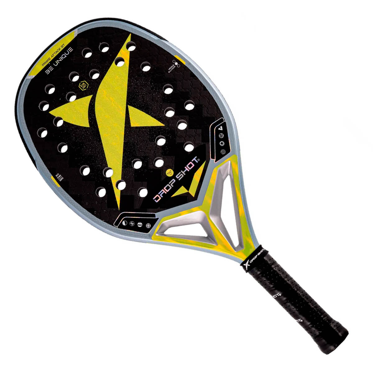 A DROP SHOT apresenta a PRIME ATTACK BT, uma raquete desenvolvida para jogadores que buscam potência equilibrada, firmeza estrutural e controle em todos os golpes. Com materiais de alta performance e tecnologias exclusivas, o modelo entrega estabilidade, conforto e resposta rápida, ideal para quem quer subir o nível dentro da quadra. Sua estrutura em Carbono 24K Twill garante rigidez, durabilidade e uma sensação sólida no impacto, enquanto o núcleo em EVA Soft amplia o ponto doce e absorve vibrações, proporcionando uma batida confortável e potente. O Ergo Pro-Protecter protege a estrutura da raquete contra impactos e desgastes, sem interferir no equilíbrio. A tecnologia Power Beam Heart reforça o coração da raquete, otimizando a transmissão de energia e a estabilidade nos golpes. O 3D Face System e o SPIN COATING (tratamento) aumentam a aderência da bola à face, facilitando a aplicação de efeitos com mais controle. Já o Smart Holes System contribui para maior precisão e estabilidade aerodinâmica. Com visual moderno e acabamento premium, a PRIME ATTACK BT combina performance e personalidade, sendo uma excelente escolha para jogadores que querem desempenho consistente e evolução técnica.