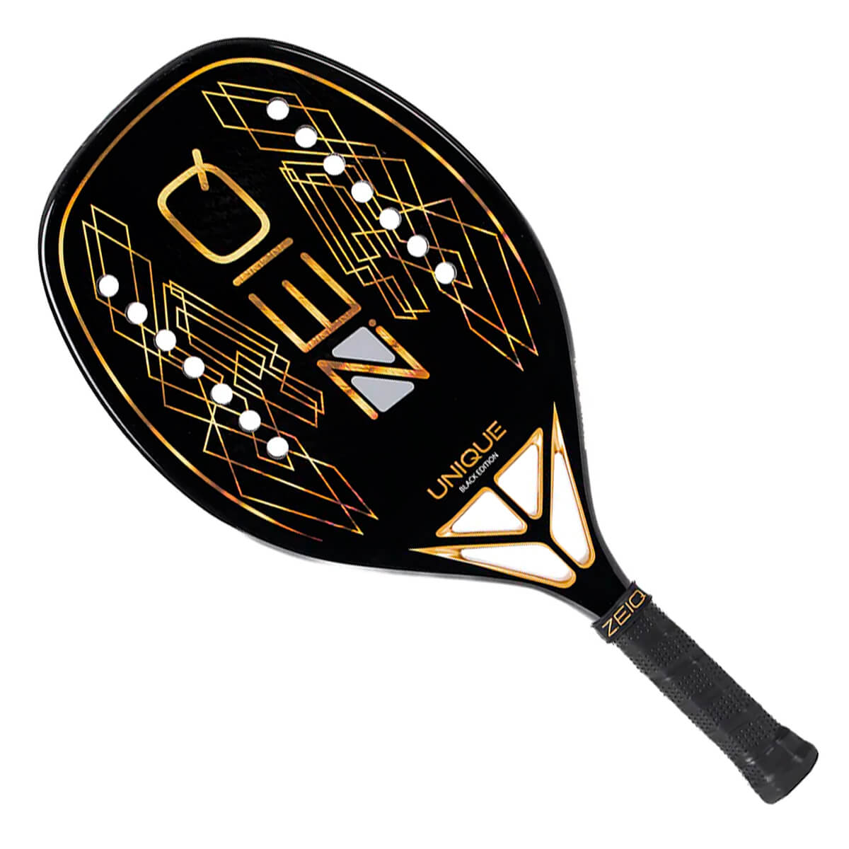 A Raquete Unique Zeiq é verdadeiramente especial, representando a busca pela singularidade e excelência no beach tennis. Cada detalhe foi cuidadosamente elaborado para oferecer uma experiência única aos jogadores apaixonados. Sua textura em relevo, adornada com o emblemático logo Zeiq, confere um visual distinto. O coração da raquete apresenta um desenho exclusivo, especialmente criado para esta raquete, simbolizando a singularidade e o caráter distintivo desta peça. É uma declaração de individualidade e autenticidade no esporte. O FRAME em fibra de carbono 18K é o auge da tecnologia, oferecendo uma estrutura excepcionalmente resistente e leve para potência e controle superiores. O EVA Soft Black no interior proporciona conforto e amortecimento, enquanto o Super Grip garante uma pegada firme e segura. Seja único com a Raquete Unique Zeiq, uma obra de arte que reflete sua paixão pelo beach tennis e sua busca pela excelência. Cada golpe com esta raquete é uma expressão de sua individualidade no esporte.