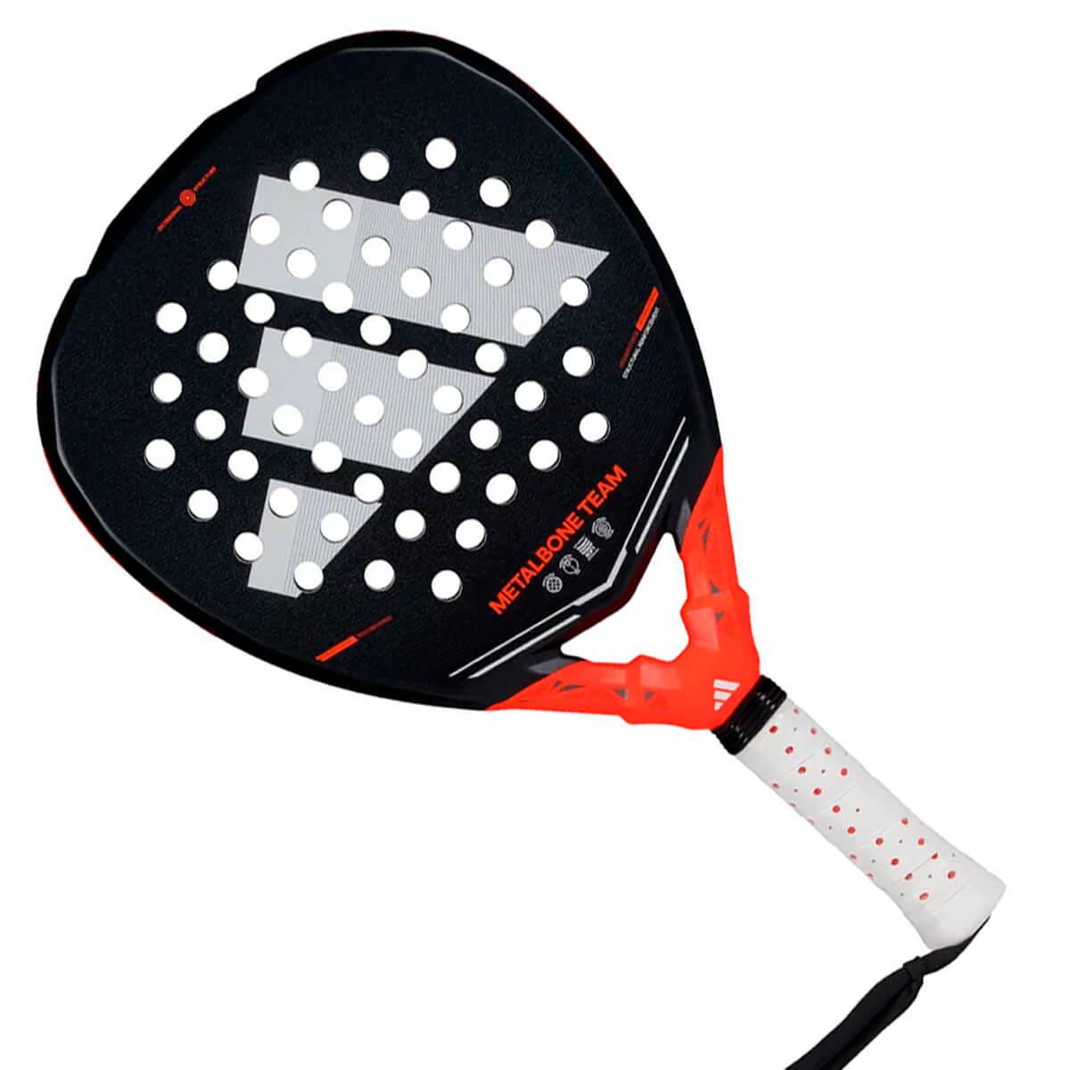 A raquete de padel ADIDAS Metalbone Team 2026 desenvolvida com estrutura tubular de carbono, com uma seção octogonal cuidadosamente projetada para reduzir a torção para golpes mais precisos. Possui grip mais longo aumenta a inércia e a potência nos golpes. Design poliédrico da estrutura e do núcleo da raquete proporciona maior rigidez e potência. Borracha eva de baixa densidade que proporciona excelente saída de bola e conforto no jogo. Composta por fibra de vidro, toque suave, maior conforto e ótima saída de bola em todos os golpes. Formato diamante para alto equilíbrio que beneficia golpes ofensivos. Com mais peso posicionado na parte superior da raquete, a inércia aumenta, proporcionando maior potência em golpes de ataque. Destinada para jogadores de alto nível com uso frequente.